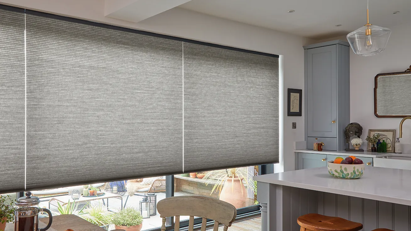 Våre plisségardiner kan motoriseres, og styres med veggbryter, fjernkontroll eller app!
